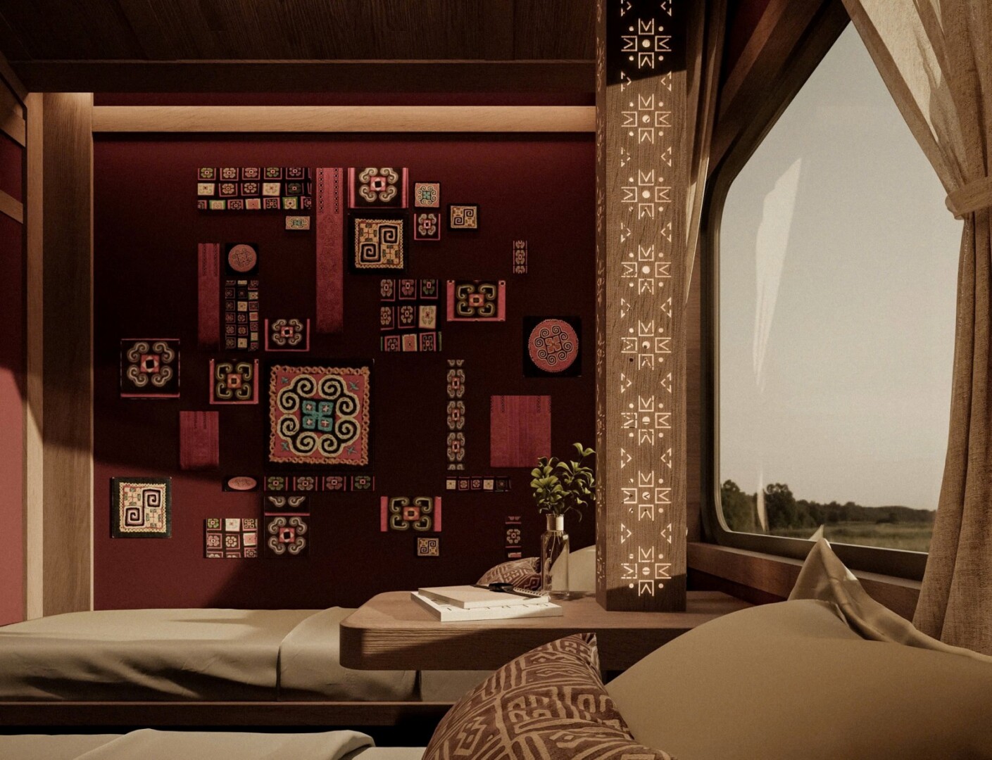 Bask in a restful atmosphere inspired by the acacia forests of Northern Vietnam. The Grand Suite Twin offers two single beds in an artfully handcrafted setting—ideal for traveling companions seeking stillness and refinement in equal measure. Brocade accents and serene lighting complete the ambience.